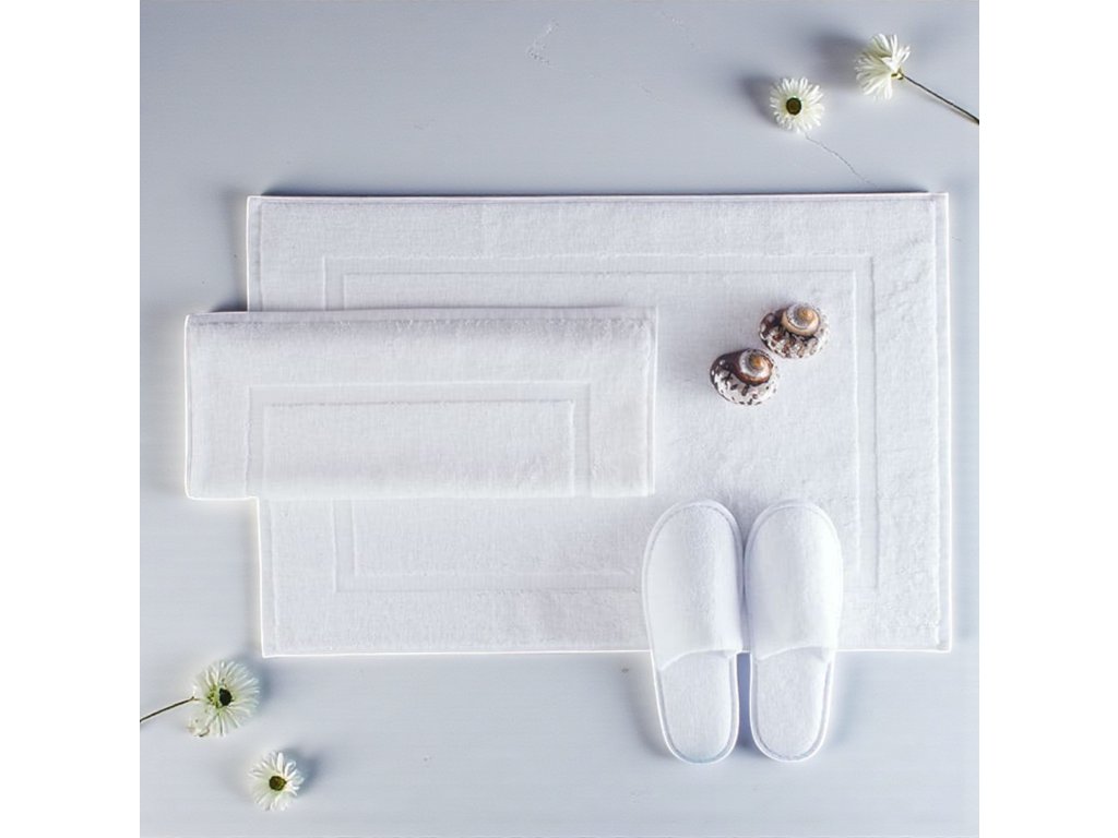 Die Standard-Badematte SNOW mit kurzem Flor besteht aus 10 % Baumwolle und hat ein Gewicht von 700 g/m².