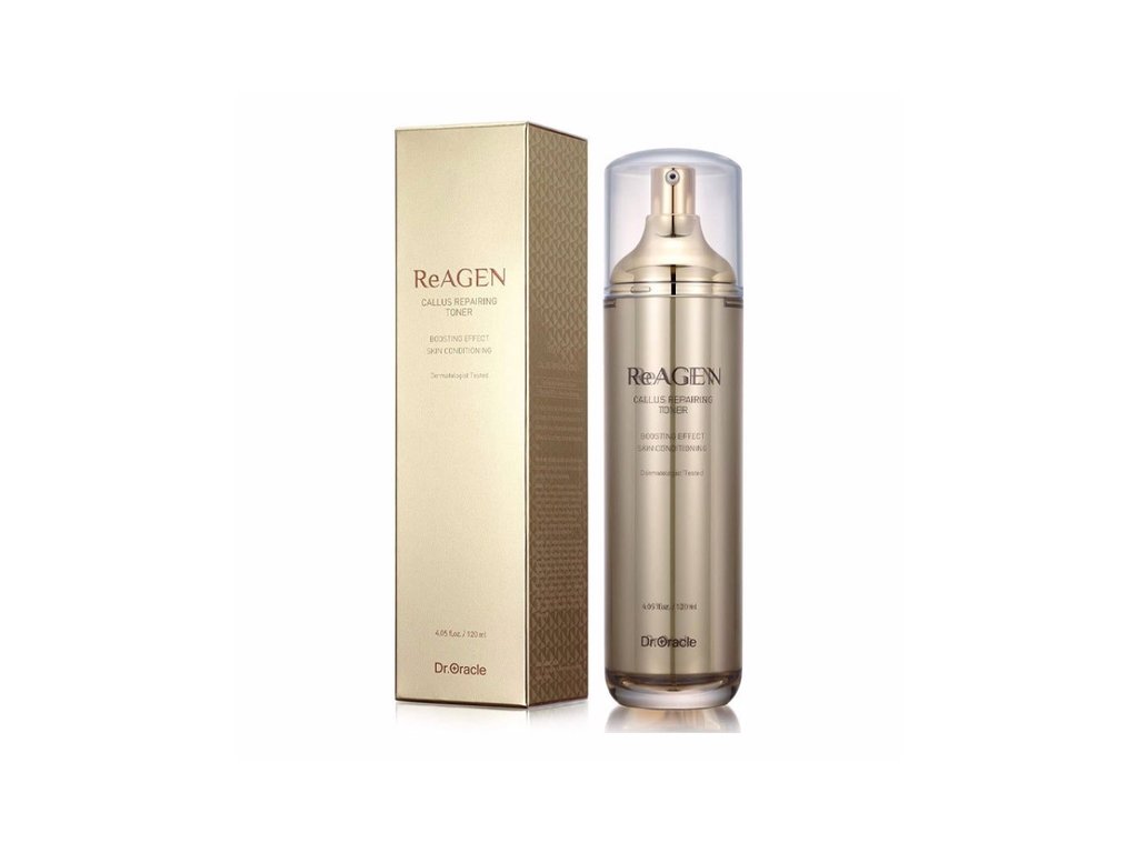 Geben Sie Ihrer Haut mit dem ReAGEN Callus Repairing Toner von Dr. Oracle wieder Wohlbefinden und Strahlkraft. Dieses Produkt enthält eine Formel, die mit 300 ppm Stammzellkulturextrakten aus Alpenpilzen und Hyaluronsäure angereichert ist. Es unterstützt die tiefe Zellregeneration der Haut und erhöht ihre Elastizität und Widerstandsfähigkeit. Der Toner beschleunigt den Hautstoffwechsel und verlangsamt so die Anzeichen vorzeitiger Hautalterung deutlich.