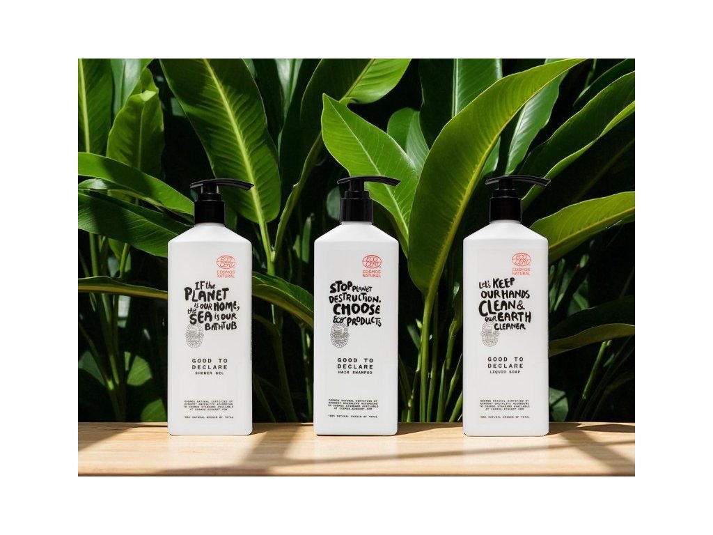 Die neue Papoutsanis-Serie verkörpert die Herausforderung einer zukunftsweisenden, umweltfreundlichen Linie zum Schutz unseres Planeten. „Wenn der Planet unser Zuhause ist, ist das Meer unsere Badewanne“ ist Ecocert-zertifiziert, vegan und enthält über 96 % Inhaltsstoffe natürlichen Ursprungs. Die Verpackung selbst ist recycelbar und besteht zu 100 % aus recyceltem Material. GOOD TO DECLARE wurde mit dem COSMOS NATURAL Bio-Zertifikat ausgezeichnet.