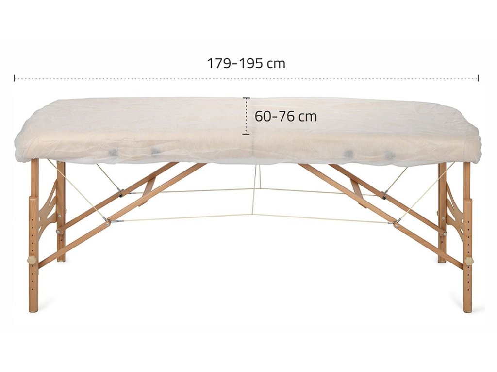 Diese Auflage schützt die Liegenoberfläche bei Trockenbehandlungen und Spa-Anwendungen. Sie schützt die Liege effektiv vor Schmutz und Feuchtigkeit und sorgt so für optimalen Komfort und Hygiene. Eine unverzichtbare Ergänzung für die Ausrüstung jedes Massagetherapeuten. Die Auflage aus Vliesstoff mit Gummizug an den kurzen Seiten verhindert ein Verrutschen während der Behandlung.