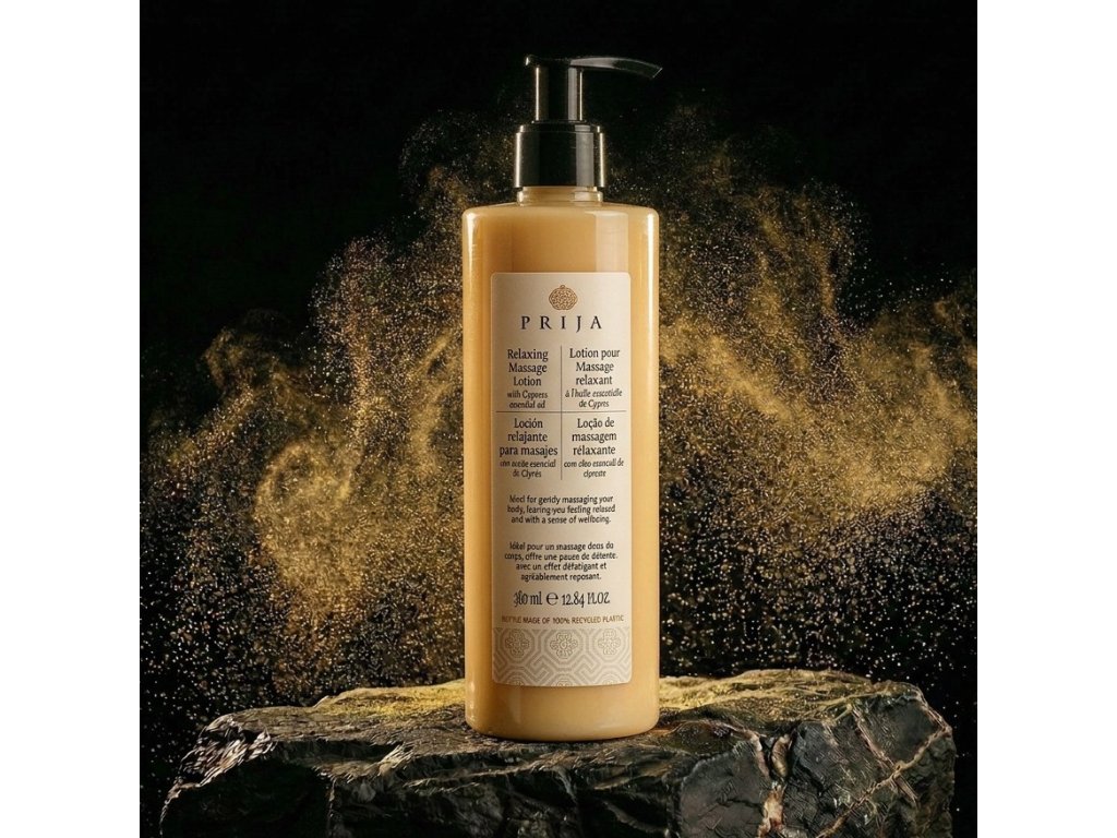 Entspannende Massage-Körperlotion PRIJA, die Emulsion fühlt sich leicht, erfrischend und angenehm auf der Haut an, ideal für eine sanfte Körpermassage mit entspannender und stresslindernder Wirkung. Dank Aloe Vera erfrischt und hydratisiert sie die Haut und macht sie geschmeidig und geschmeidig. Angereichert mit Zypressenöl sorgt sie für einen Moment der Entspannung mit erfrischender und wohltuender Wirkung.