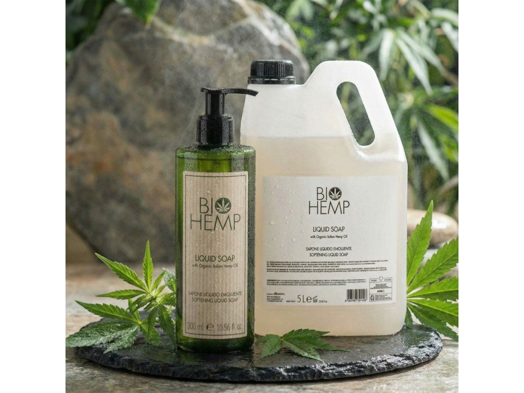 Bio Hemp ist eine nachhaltige Produktkollektion, da die Flaschen, Verschlüsse und Etiketten aus 100 % recyceltem und recycelbarem Material bestehen, wodurch eine minimale Umweltbelastung gewährleistet wird.Seine Zusammensetzung ist mit italienischem Bio-Hanföl mit hervorragenden antioxidativen und feuchtigkeitsspendenden Eigenschaften angereichert.
