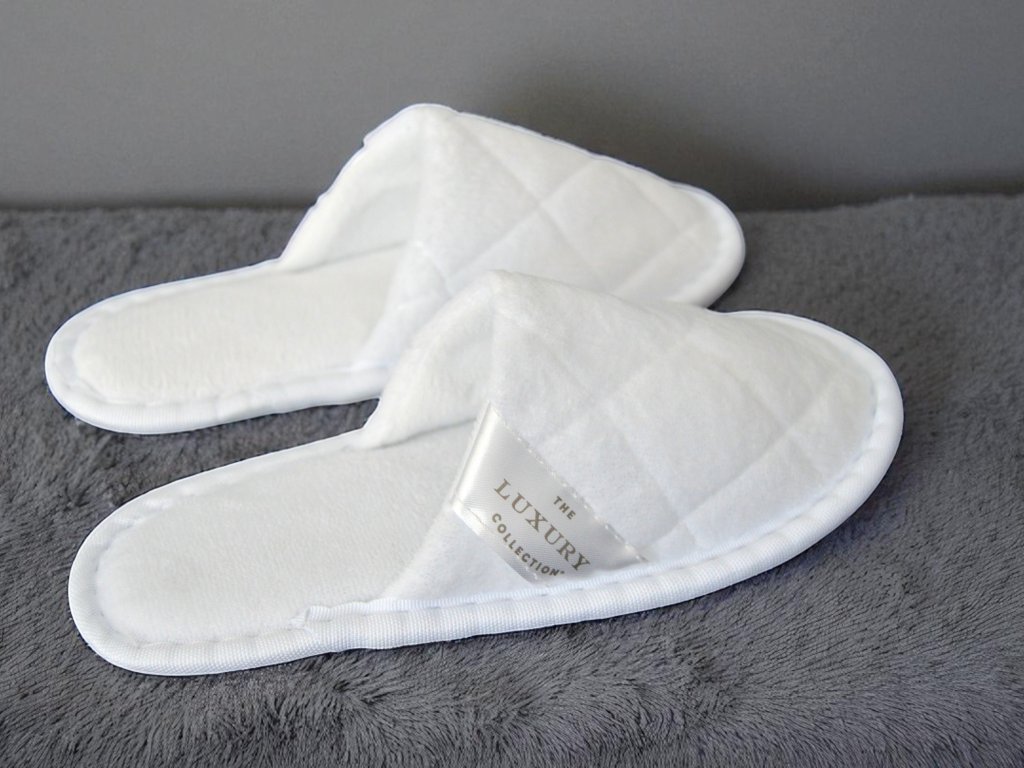 Hausschuhe der LUXURY COLLECTION für anspruchsvolle Gäste und Hotels, die einen außergewöhnlichen Eindruck hinterlassen möchten. Die Sohle besteht aus 5 mm dickem EVA-Material, ist für alle Bodenarten geeignet und mit Anti-Rutsch-Beschichtung versehen. Die Hausschuhe sind in Größe 22 cm erhältlich und können individuell gestaltet werden, z. B. mit einem gestickten oder gedruckten Logo. Die Lieferung erfolgt im Karton zu 200 Stück, jedes Paar wird in einem separaten Hygienebeutel geliefert.