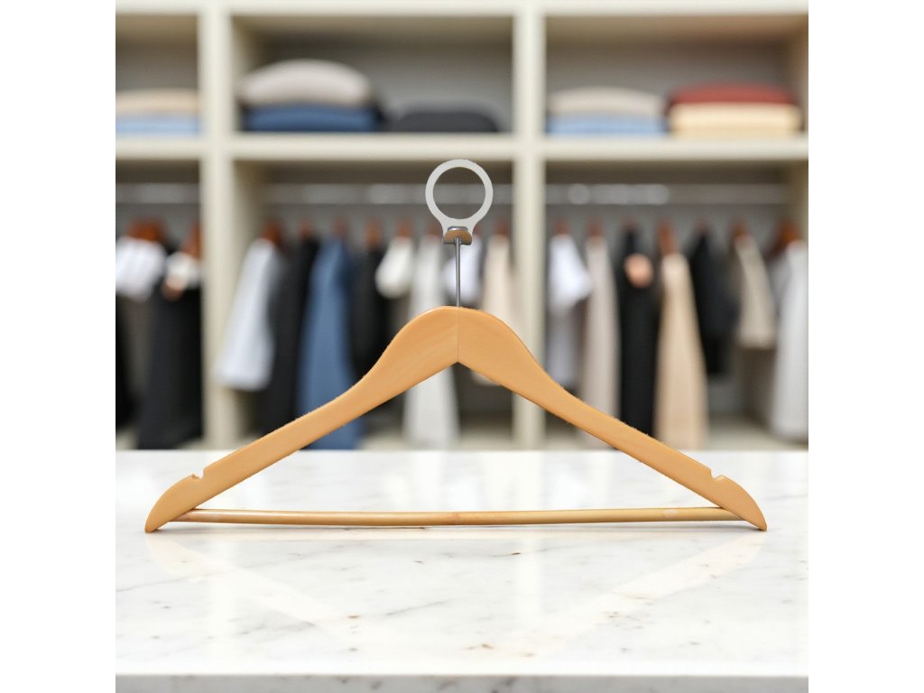 Holzbügel mit Diebstahlsicherungsring 5 Stück NATURAL