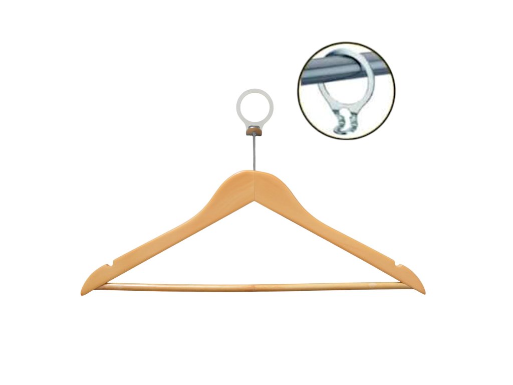 • Holzbügel mit Diebstahlsicherungsring