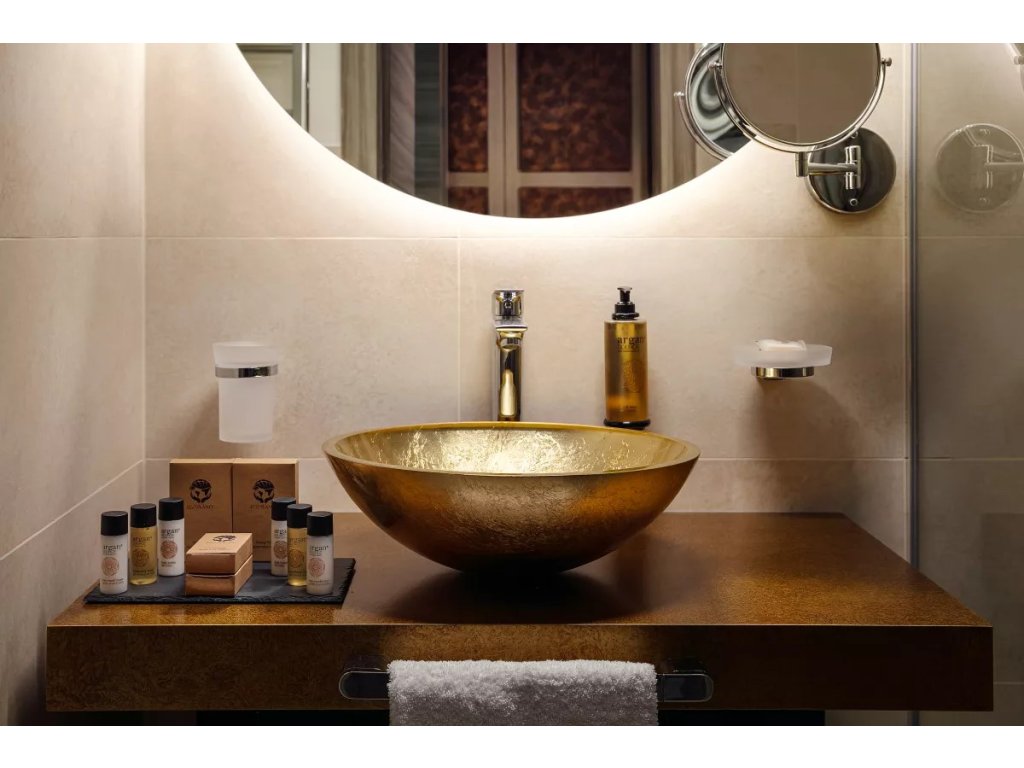Argan Source ist eine Höflichkeitslinie, die alle Vorteile von Bio-Arganöl enthält, einem seltenen Inhaltsstoff, der die Haut dank seiner antioxidativen, weichmachenden und feuchtigkeitsspendenden Eigenschaften pflegen und beruhigen kann. Argan Source ist eine Kollektion, die mit ihrer warmen und einhüllenden Ästhetik geschaffen wurde, um den Gästen ein intensives und entspannendes Erlebnis des Wohlbefindens zu bieten, das durch den raffinierten Duft, der die Frische von Bergamotte und Mandarine mit der Süße von kombiniert, noch einzigartiger wird Lilie. Tal, Pfingstrose und Rose. Das olfaktorische Erlebnis wird durch die Verbindung mit den umgebenden Noten von Sandelholz, Ambra und Moschus vervollständigt, die der Eleganz des Duftes einen Hauch von Geheimnis und Charme verleihen.