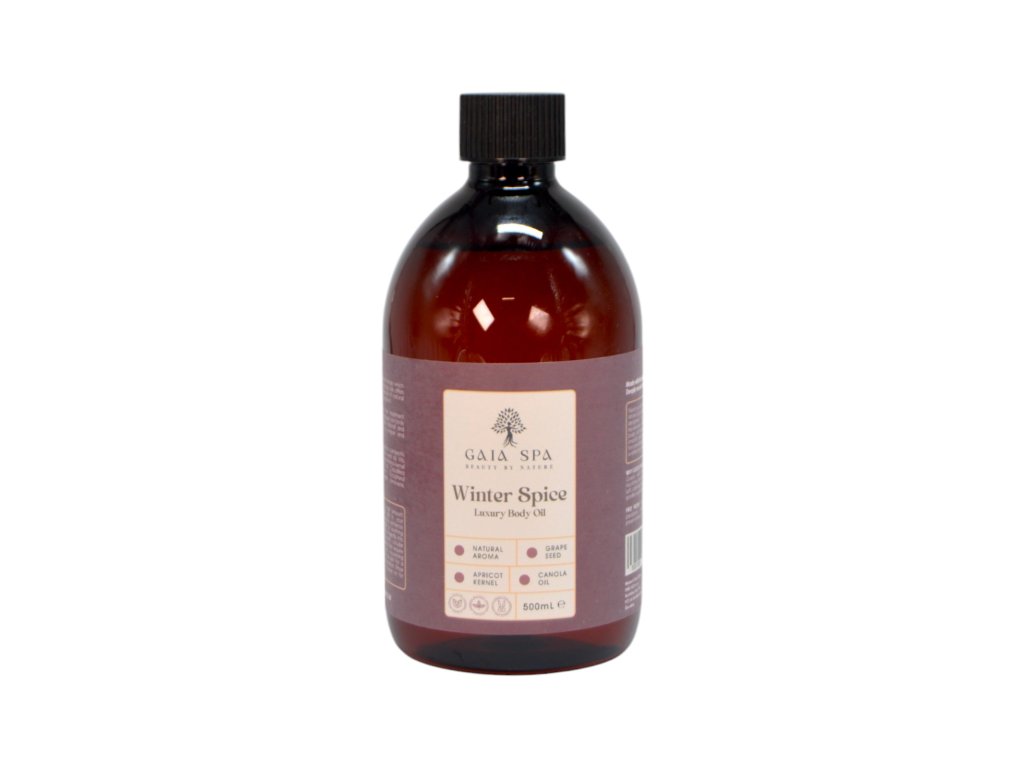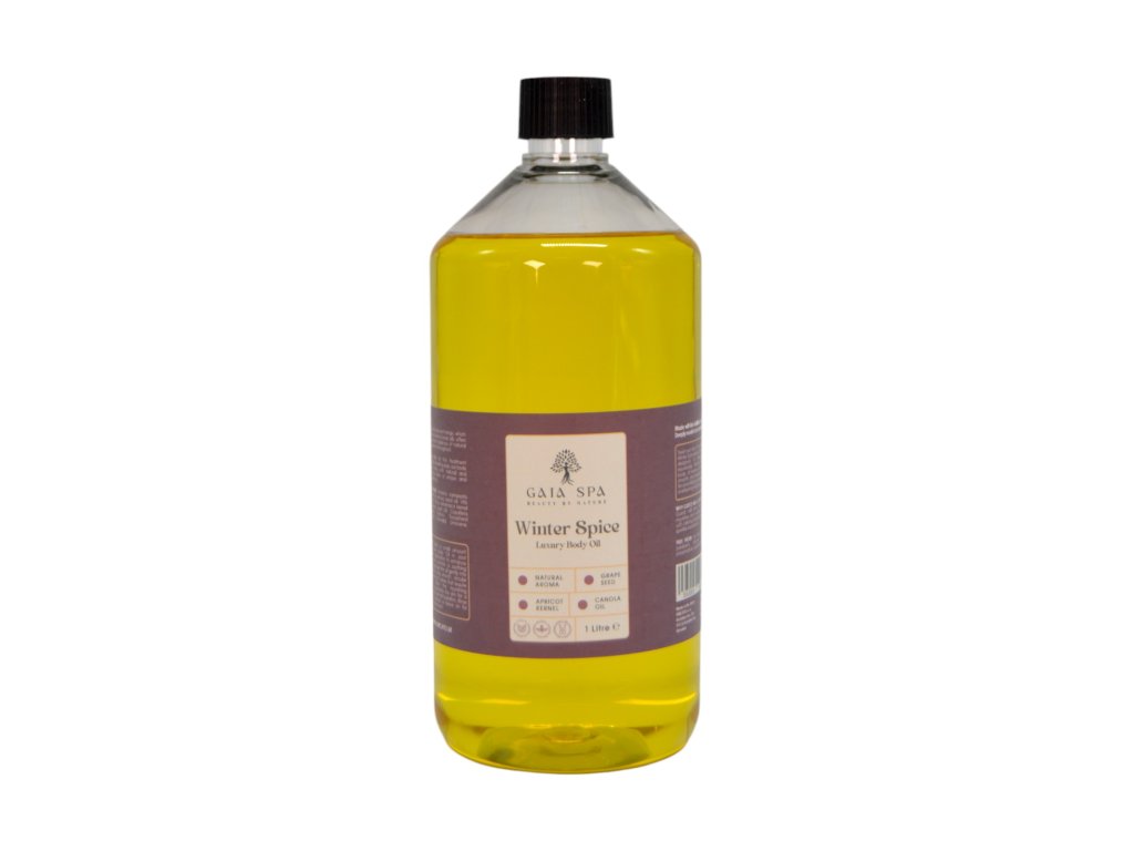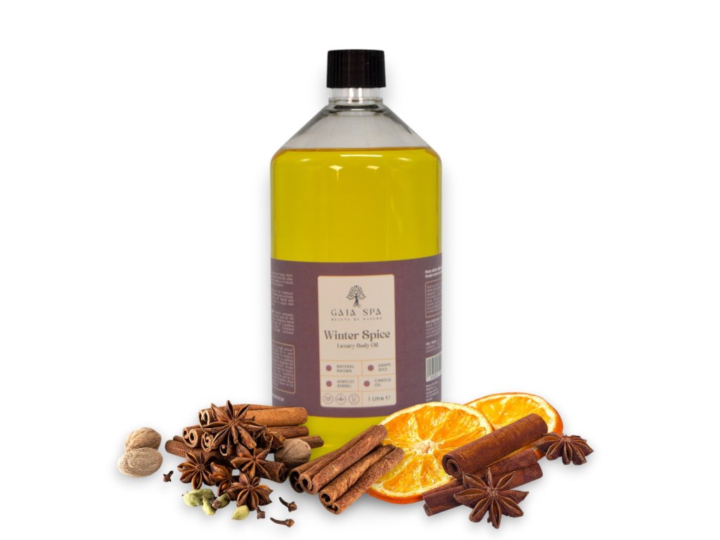 Massageöl Winter Spice – GAIA SPA mit reichhaltigem und natürlichem Duft, pflegt Ihre Haut tiefenwirksam. Verwöhnen Sie Ihre Haut mit den luxuriösen Vorteilen des Mandarinen-Körperöls, das die Haut tiefenwirksam mit Feuchtigkeit versorgt und regeneriert. Macht die Haut weich, geschmeidig und tiefenwirksam genährt.Ein belebendes und wärmendes Massage-Körperöl mit dem Duft von Zimt, Nelken und Zitrusfrüchten hilft, die Funktion des Lymphsystems zu verbessern. Regelmäßige Massagen tragen dazu bei, das Erscheinungsbild von Cellulite zu reduzieren.
