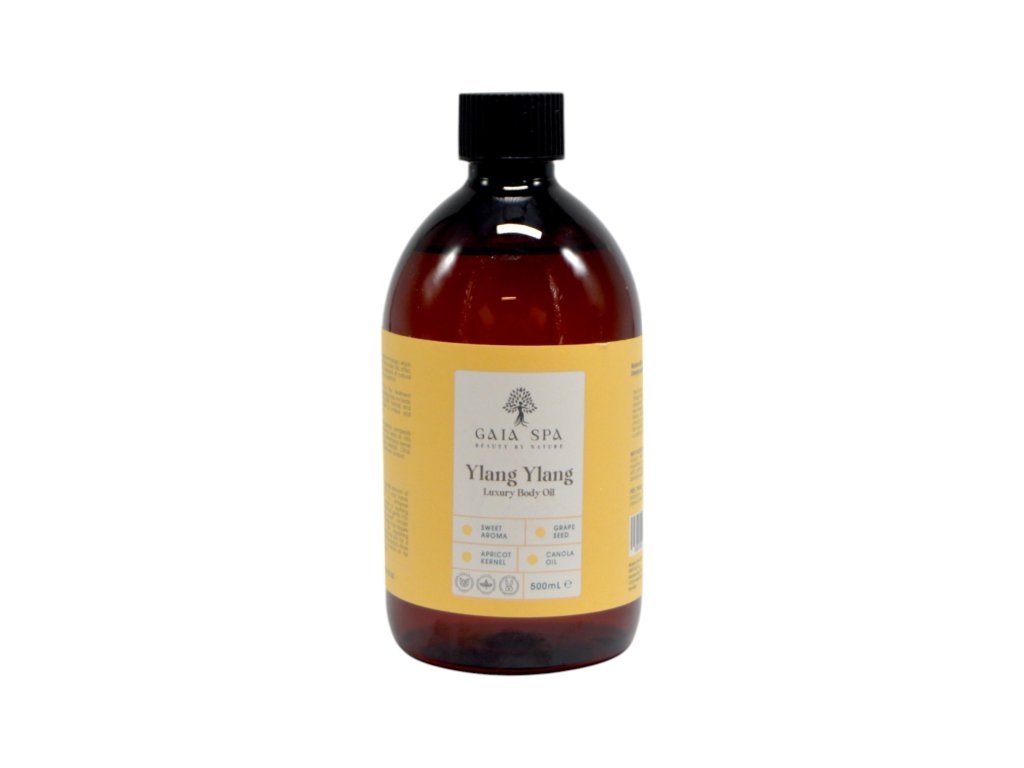 Luxuriöses Massageöl Ylang Ylang (Ylang Ylang) – GAIA SPA mit einem reichen und natürlichen Duft, pflegt Ihre Haut tiefenwirksam. Verwöhnen Sie Ihre Haut mit den luxuriösen Vorteilen eines Körperöls, das die Haut tiefenwirksam mit Feuchtigkeit versorgt und regeneriert.Ylang-Ylang-Blütenöl verjüngt, befeuchtet und strafft die Haut perfekt, trägt zur Normalisierung der Talgdrüsen bei, trägt zu einer positiven Wirkung auf das Nervensystem bei und hilft, Müdigkeit, Gereiztheit und Stress zu lindern.Der Duft von Ylang-Ylang stimuliert die kreative Energie, hilft bei der Wiederherstellung der inneren Stärke und steigert das Selbstvertrauen.Der süße Duft ist ein wirksames Mittel gegen Depressionen. Ein Heilmittel zur Entspannung von Seele und Körper.