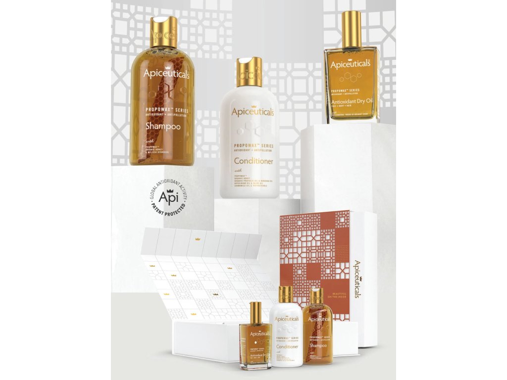 Das luxuriöse Haarpflege-Geschenkset, angetrieben durch das patentierte PROPOWAX™ „Mit lebendem Wabenhonig“-System, bietet ein vollständiges antioxidatives Ritual für Kopfhaut und Haare. Jede Formulierung ist reich an Antioxidantien, schützt Kopfhaut und Haare vor vorzeitiger Alterung und stellt gleichzeitig Stärke, Glanz und Vitalität wieder her.