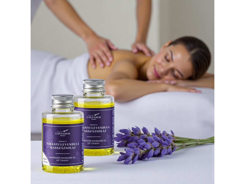 Sanftes Massageöl Lavender Tihany mit natürlichen Schätzen wie Sonnenblumenöl, Süßmandelöl und Vitamin E schützt und regeneriert die Haut. Dank spezieller Inhaltsstoffe zieht es schnell ein und hinterlässt ein seidiges Hautgefühl. 100 % reines ätherisches Lavendelöl trägt zur Entspannung von Körper und Geist während der Massage bei. Es hebt sich durch seine hochwertigen Inhaltsstoffe wie Mandelöl, pflanzliches Lavendelöl, Oliven-Squalen und fraktioniertes Kokosnussöl von den meisten anderen Massageölen auf dem Markt ab.