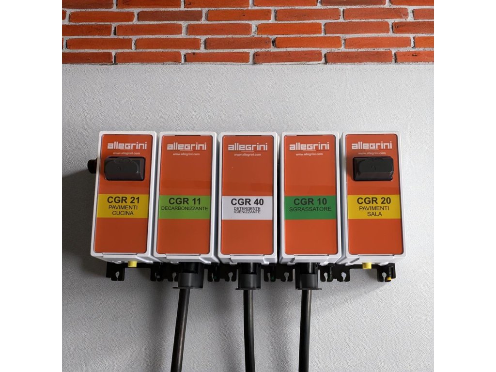 Die ALLEGRINI Mischstation ermöglicht die Verdünnung von bis zu vier Produkten in Spendern.