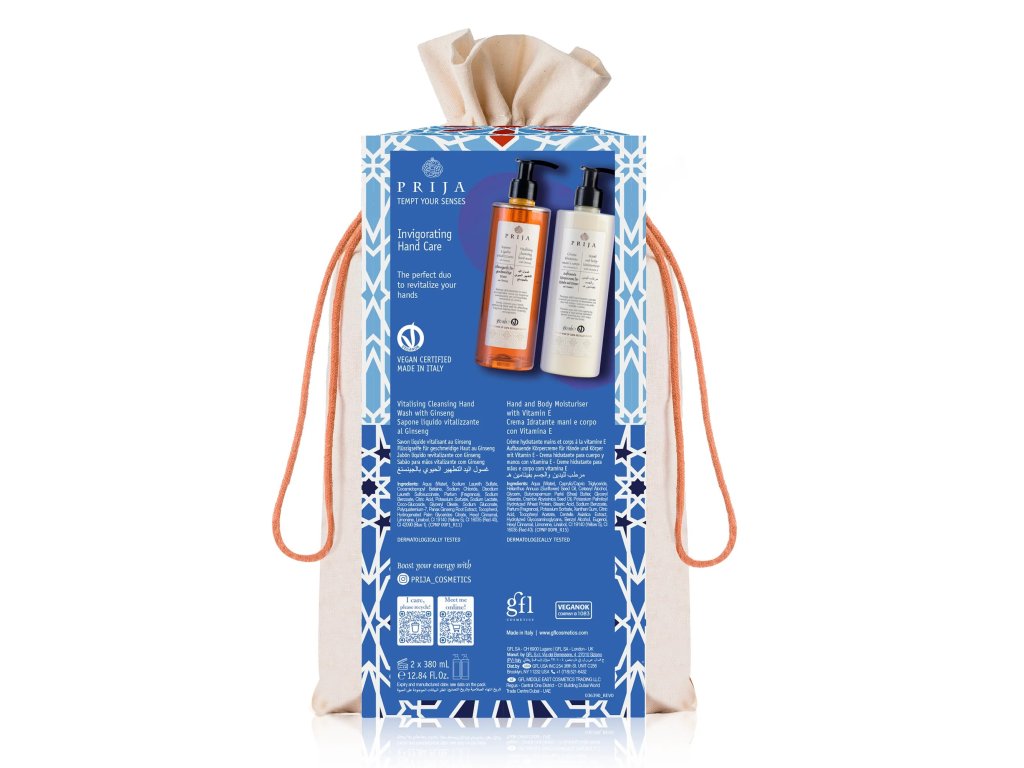 Das perfekte Duo zur Revitalisierung Ihrer Hände. Genießen Sie die natürlichen Vorteile der Prija-Kosmetik. Die Kombination aus natürlichen Ölen und warmen Tönen (Artemisia, Kardamom, Zedernholz, Madagaskar-Vanille, Ambra) belebt Körper und Geist.