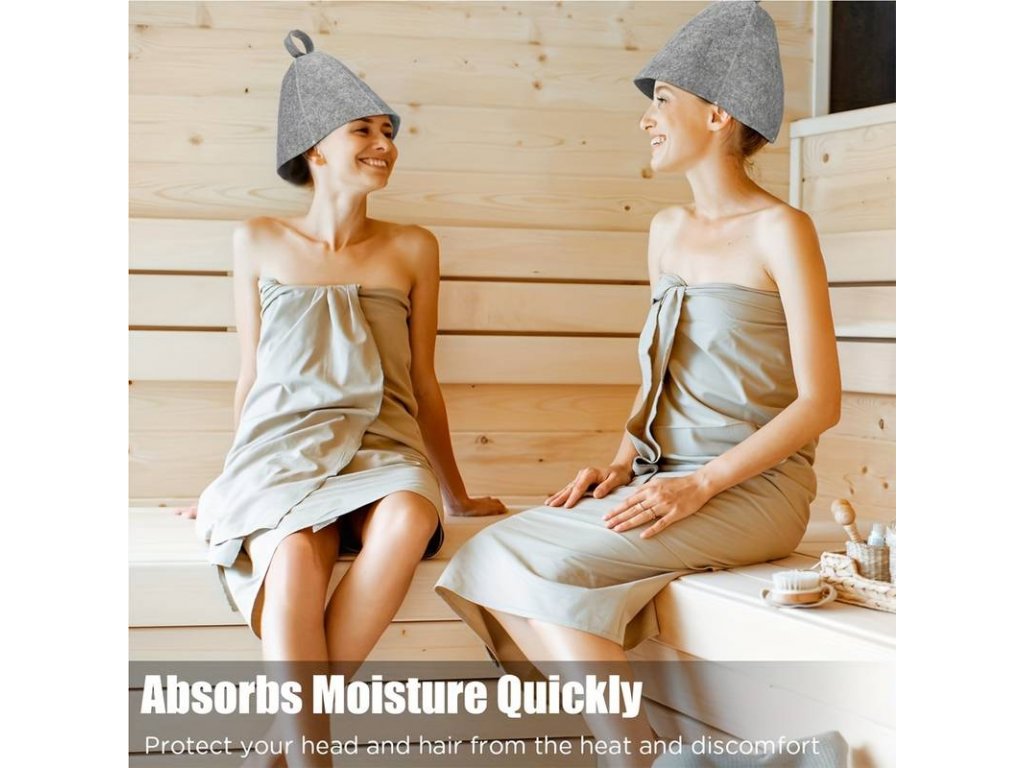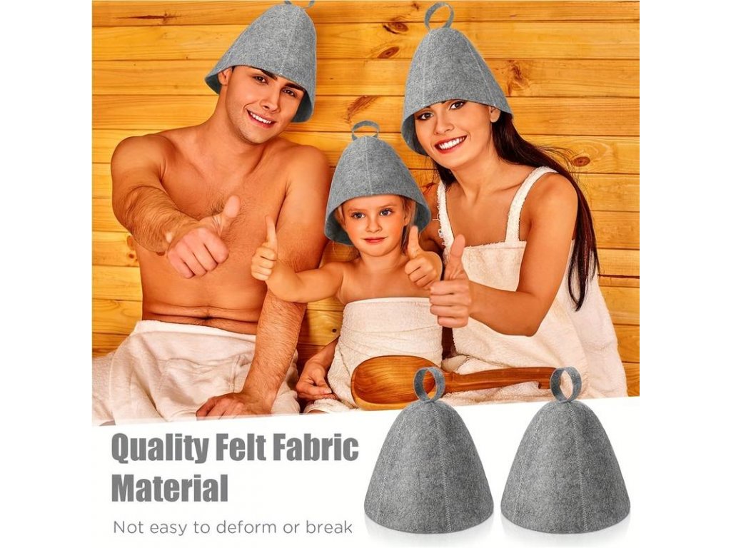 Saunahaube für Damen und Herren Grau – Diese universelle SAUNA-Haube garantiert Ihnen maximalen Komfort in der Sauna. Es verhindert eine Überhitzung des Kopfes und schützt das Haar vor dem Austrocknen.Es besteht aus Wollfilz, ist abriebfest, wärmeisolierend, leicht, leicht zu waschen und zu pflegen, trocknet schnell und verändert weder Farbe noch Form. Dank der Schlaufe zum Aufhängen garantiert es ein einfaches Tragen und Aufbewahren und trocknet so schnell.Die Mütze ist sehr hautsympathisch, wird nicht nass, ist luftig und bequem.