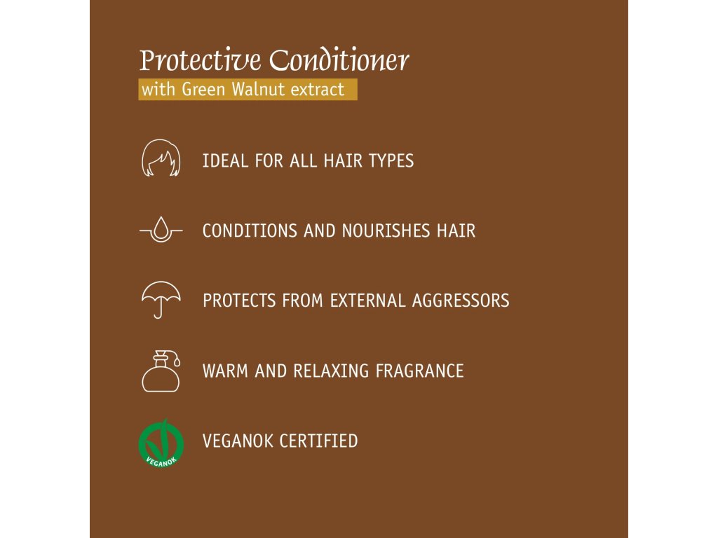PRIJA Creme-Conditioner mit grünem Walnussextrakt, geeignet für alle Haartypen. Es hat eine schützende und pflegende Wirkung auf das Haar. Angereichert mit grünem Walnussextrakt.