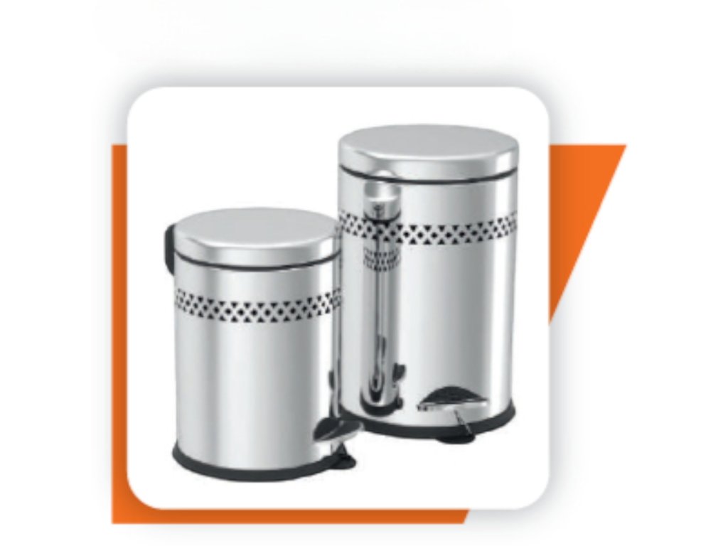 Tret-Abfalleimer MANUEL 8 L – Innen-Edelstahl-Tretabfalleimer mit hygienischem Öffnen über Fußpedal, ausgestattet mit herausnehmbarem Inneneimer aus Kunststoff, abgerundeten Kanten.