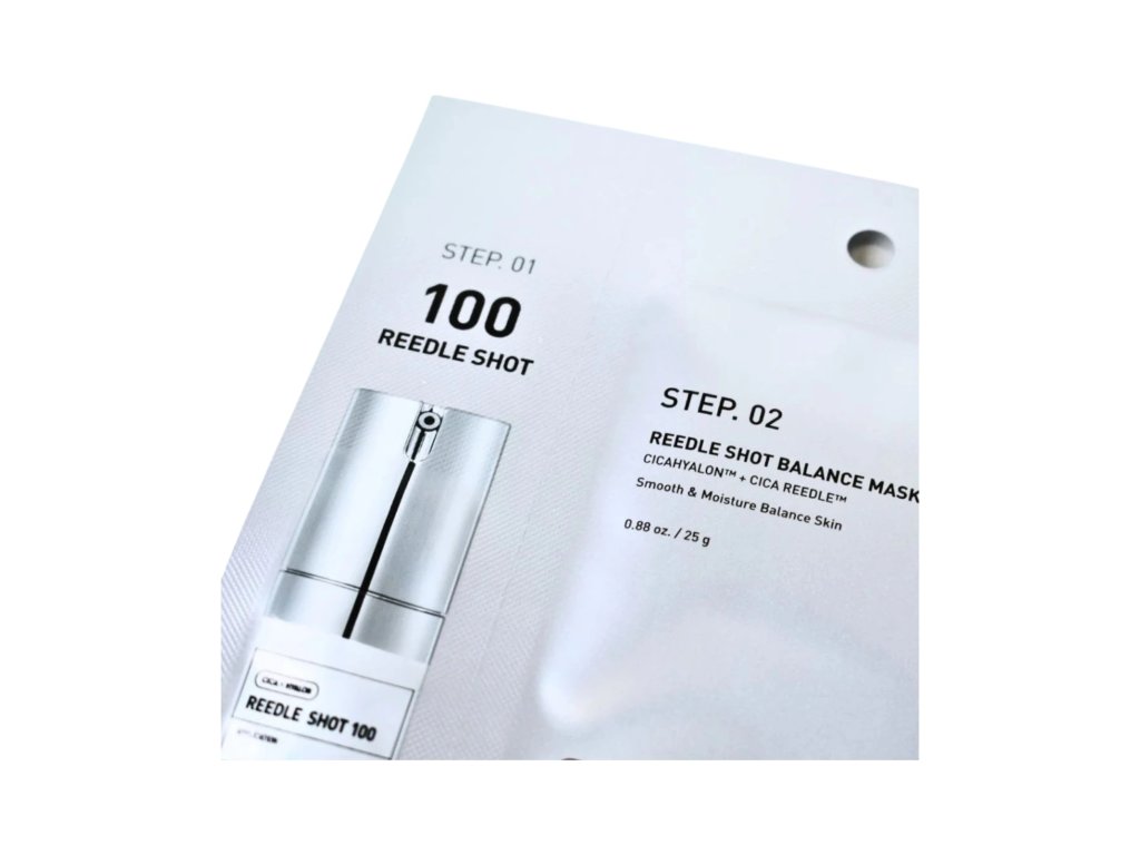 Schritt 1: Reedle Shot 100 nutzt die CICA REEDLE™-Technologie, die die Mikrodermabrasion nachahmt und Silicapartikel sowie niedermolekulare Wirkstoffe tief in die Haut einbringt, um die Zellerneuerung zu unterstützen.